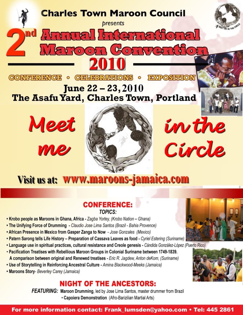 The Charles Town Maroon Council is soliciting a range of sponsorship contributions from J$10,000 – J$1,500,000 in cash and/or in kind, towards the following range of conference costs: promotion, performers, food and beverage, transportation, internet, security, etc.