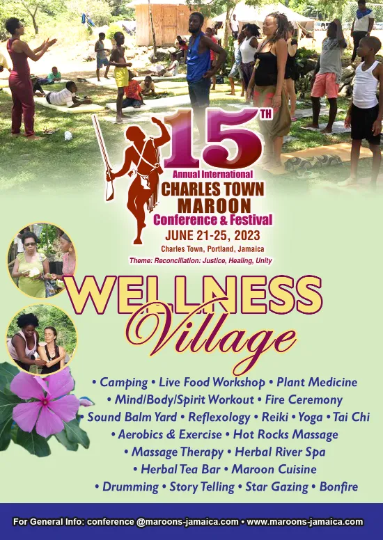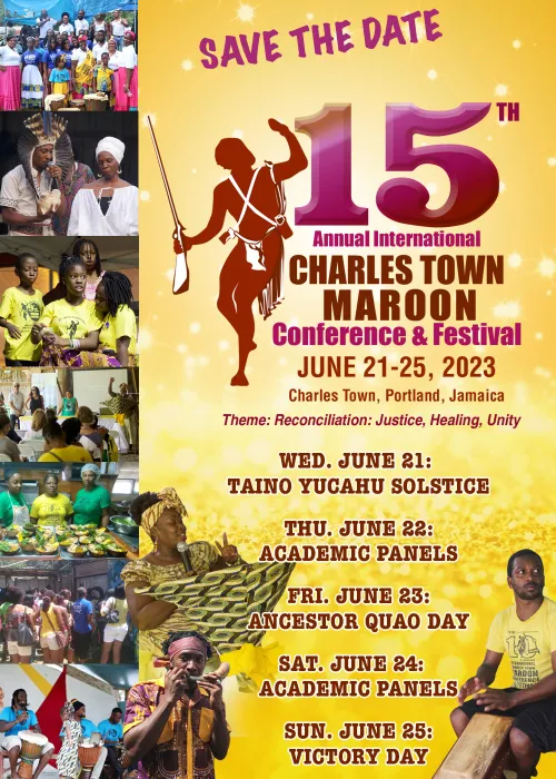 The 15th Annual International Charles Town Maroon Conference and Festival, held from 21st – 25th June 2023 at the Asafu Yard in Charles Town, Portland, Jamaica, is a unique and meaningful event. This year’s theme of Reconciliation: Justice, Healing, Unity will be explored through a variety of activities, including academic presentations by scholars, cultural events, drumming and dancing, a wellness village, a craft village, honouring the ancestors, special maroon foods, and a day celebrating the Taino peoples. Presenters and visitors from Jamaica, the Caribbean, Africa, North America and around the world will come together to learn, share, and celebrate the history and culture of the Maroon people. We invite you to join us in this incredible event and to help make it even more special by becoming a sponsor. Your support will help us to create a powerful and meaningful experience for all involved.